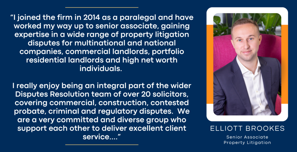 The team regards every single case that it works on as hugely important, as it is advising clients on issues involving either their own home, which is hugely important, or on a property, which could be one of the biggest investments they have ever made. Elliott Brookes leads the property litigation team.